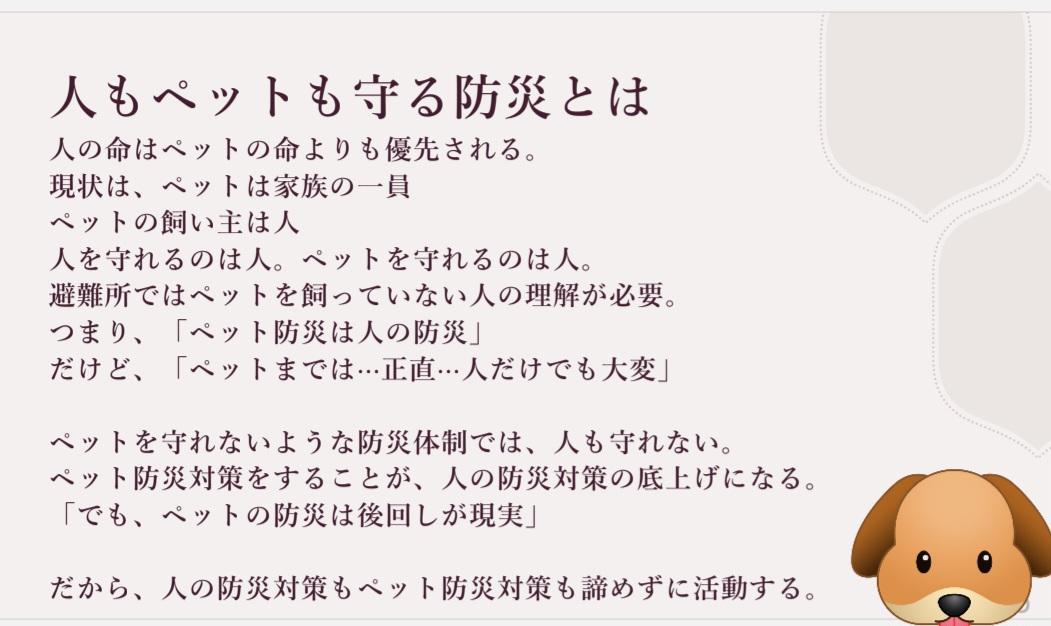 1 ペット防災の基本 2 地域防災拠点について
